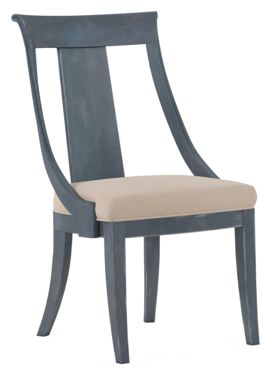 Combining traditional style with comfort, this side chair adds timeless elegance to your dining space. Featuring a splat back design, finely tailored linen blend upholstered seat, and distressed Slate finish, it offers a harmonious blend of sophistication and functionality, making every meal memorable.Read More