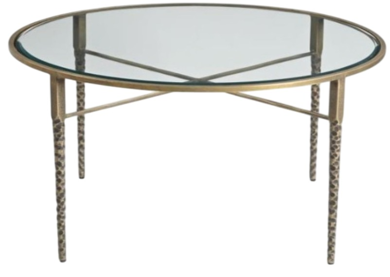 Tall tapering round legs are adorned with hand hammered texture to create an artisinal appearance to this pristine cocktail table in iron and glass. Step into a world where home décor becomes a story of love and elegance.Read More