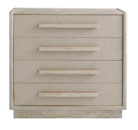 The Cotiere Drawer Chest meets function in this geometric collection, featuring solid base construction and oversized drawer pulls that evoke the style of contemporary architecture. Combining light wood with woven fabric accents in an organic palette of warm neutrals, this collection delivers modern bungalow style at its best. Experience the relaxation and sophistication this collection has to offer. A fresh take on an iconic style delivers a unique look in a class of its own.