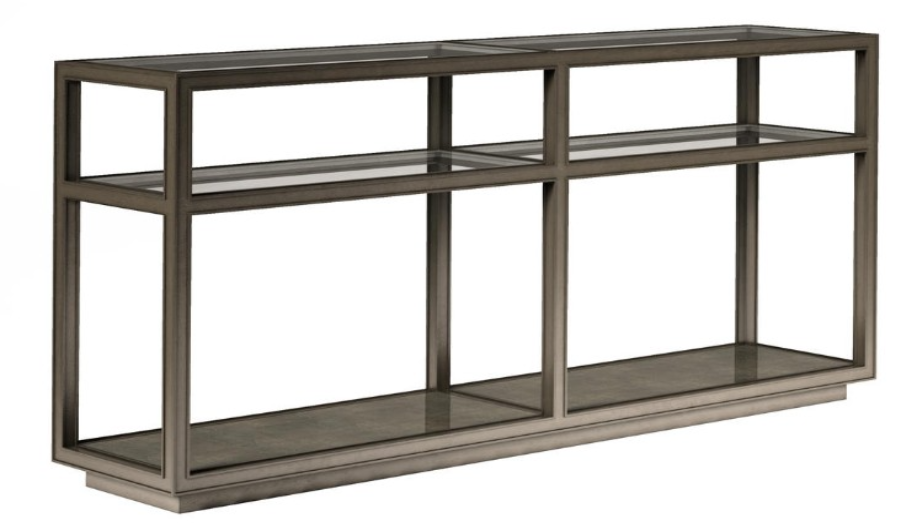 A extended version of our Cove Cocktail Table, this console table is a true statement piece. The tempered glass top adds a touch of elegance, while the open shelf underneath features cork paper application, creating a unique display area. Supported by a recessed plinth-style base, this end table is both functional and visually captivating.Read More