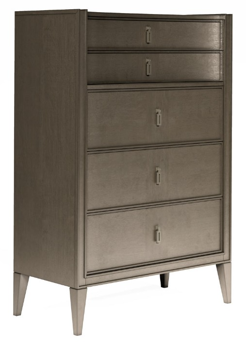This mica masterpiece, constructed stunning primavera veneers, boasts five drawers for effortless organization. The top two drawers showcase a captivating concave design, adding a touch of modern flair. For treasured keepsakes, the bottom drawer features luxurious cedar lining, while pewter hardware and flared square tapered legs elevate the look to glamorous heights.Read More