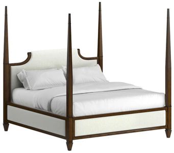 New traditional four poster bed with scolled back headboard; upholstered headboard , footboard and rails