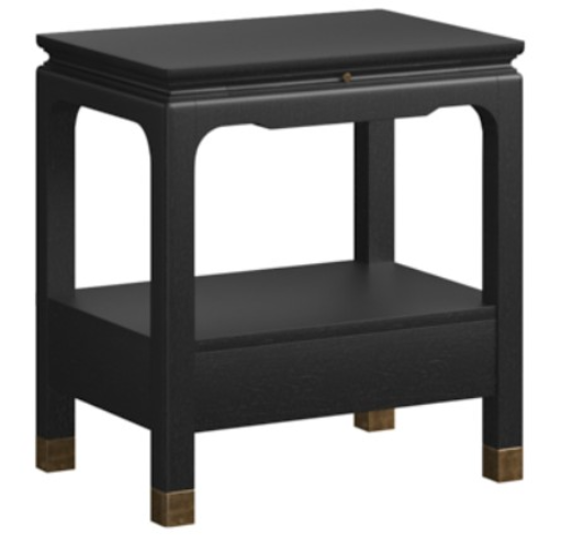 New traditional nightstand with an Asian twist ink (Ebony Black) finish. A reinvention of 19th-Century English classics infused with Chinoiserie details. Collections features pieces finished in stunning clear quartered walnut veneer, mixed with selected items in Candy Apple Red, Black and Frosted Bronze bridging timeless elegance with modern sofphistication.Read More