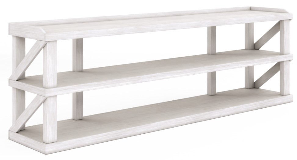 This console blends 21st-century tech needs with vintage farmhouse style. Featuring three shelves in an airy white finish, it has a functional top gallery rail. Combining rural chic with modern structure, it offers ample space for electronic devices and living room accessories.Read More