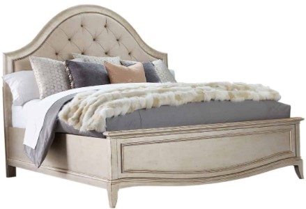 The generously button-tufted upholstery of the Starlite Queen Upholstered Panel Bed is framed in an arch of gently curved molding. The bed is finished in silver Bezel paint that has been glazed and gently aged for a soft sheen and is also available in King and California King sizes.Read More