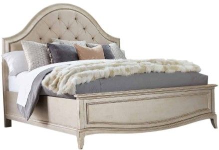 The generously button-tufted upholstery of the Starlite King Upholstered Panel Bed is framed in an arch of gently curved molding. The bed is finished in silver Bezel paint that has been glazed and gently aged for a soft sheen and is also available in Queen and California King sizes.Read More