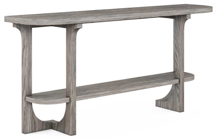 Artistry and fine craftsmanship is on display in every corner of this 70" console table, inspired by the structure of modern architecture. This piece features solid poplar construction, veneered in oak with a soft grey mink finish. A lower shelf provides additional space for baskets, bins, or other decorative accessories.Read More