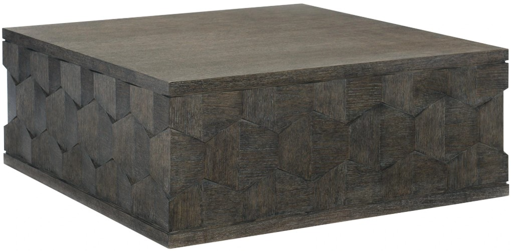 With its flawless artistry and understated elegance, Linea sets a new standard for rustic modern collections. The Linea square cocktail table puts an emphasis on form and finish. Wire-brushed oak veneers in a Cerused Charcoal finish offer subtle textures, while an eye-catching faceted veneer design adds dimension.Read More