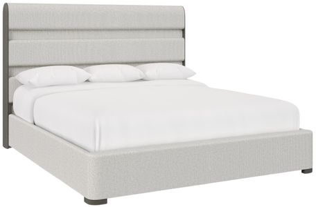 This Prado panel bed makes a distinctive statement with deep channels on the upholstered headboard, bordered by wood panels in Porcini. The footboard and side rails are also upholstered, with exposed wooden feet in the Porcini finish.Read More