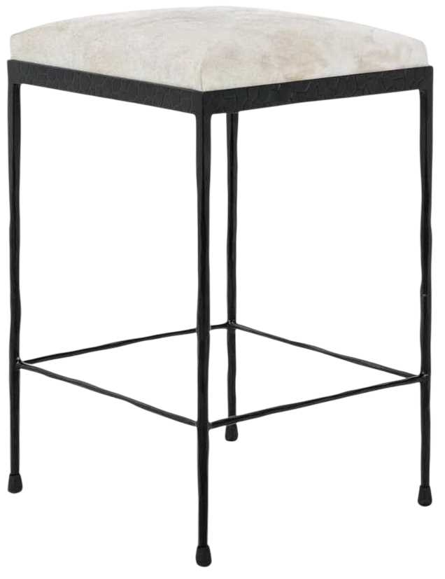 Outfit your industrial space with this handsome counter stool crafted from hammered iron and topped with hide leather upholstery. Accented with a hammered texture and deep metallic finish, the iron frame showcases skilled craftsmanship and adds rugged texture to the look. Premium hide ensures supple comfort and lasting durability.Read More