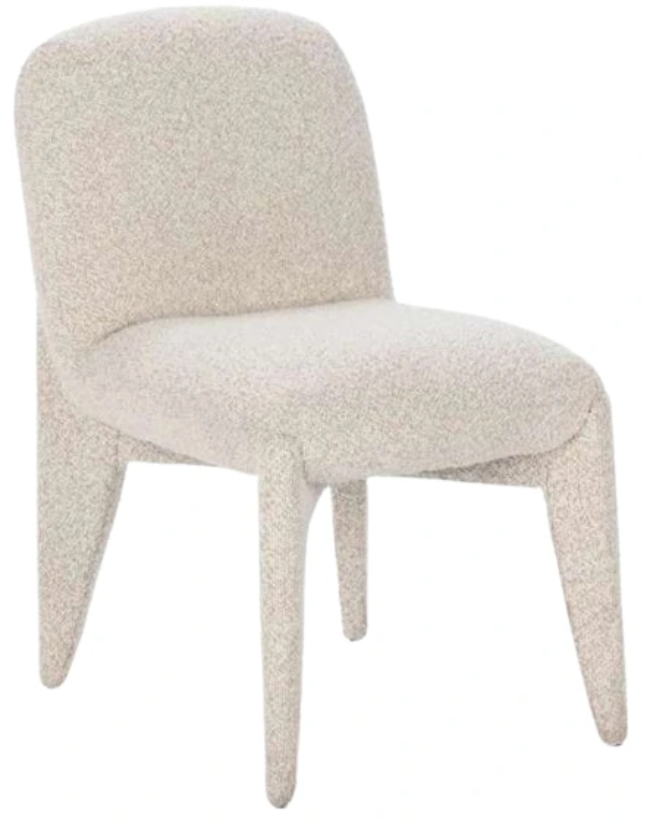 The Danson Dining Chair exudes tailored elegance with its sculptural silhouette. Upholstered in premium fabric, it features angled legs flowing into a padded back and seat, delivering style and comfort for any dining experience.Read More