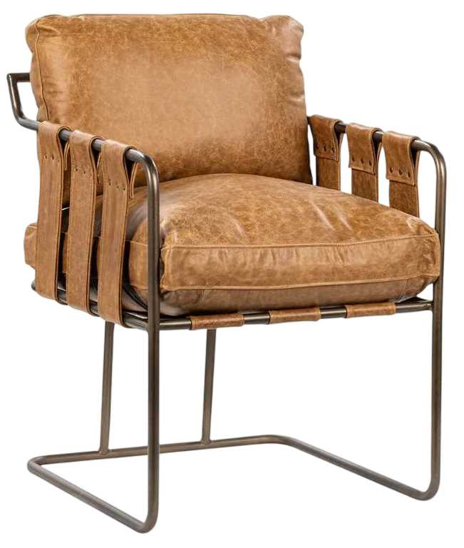 Experience the perfect blend of style and comfort with this modern industrial dining chair. Its sleek metal frame and cantilevered base create a floating effect that grabs attention. The plush cushioned seat and backrest wrapped in distressed leather provide ultimate comfort while the webbed top grain leather strap design adds a unique touch.Read More