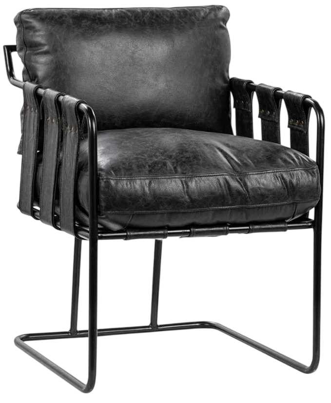 Experience the perfect blend of style and comfort with this modern industrial dining chair. Its sleek metal frame and cantilevered base create a floating effect that grabs attention. The plush cushioned seat and backrest wrapped in distressed leather provide ultimate comfort while the webbed top grain leather strap design adds a unique touch.Read More