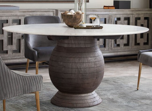 The Ashe 60 Inch dining table proves to be a stunning statement as a entryway centerpiece or dining table.