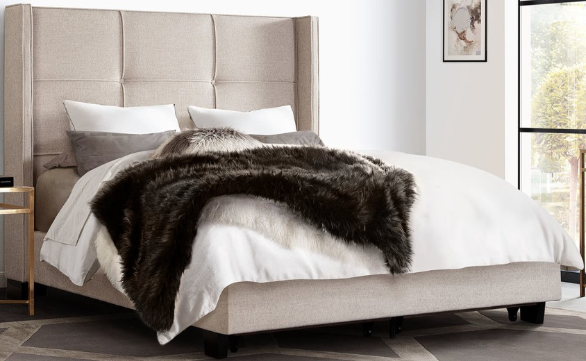 Finished in a soft grey fabric, the Beverly Bed also features an integrated pull-out footboard with two 27.5 inch x 31 inch x 6 inch storage compartments providing ample hidden storage options for the clutter free living that you desire. No box spring or foundation required.