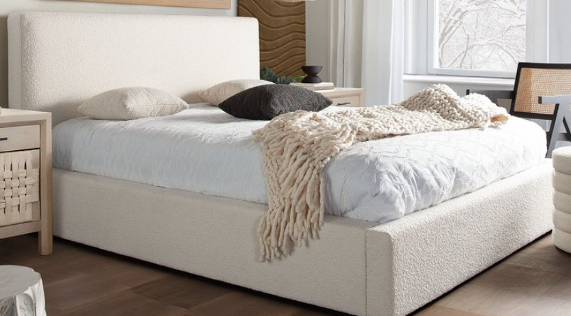 The Cloud Eastern King Bed by Diamond Sofa offers a sleek, sophisticated and stylish addition to your bedroom's decor with its Ivory Boucle fabric cover. Featuring the popular low profile bed design, the Cloud Bed's 43" headboard, side rails and footboard adds a chic vibe to your space.Read More