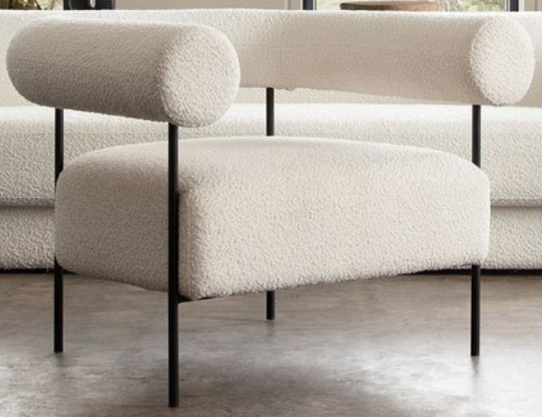 The District Chair by Diamond Sofa is a stylish addition to any room's décor. With its soft curved design, Ivory Boucle fabric and contrasting Black Metal Legs and supports, the District Chair will soon become your favorite place to relax and unwind in the home. Seat Height is 17 Inches. No Assembly Required.Read More