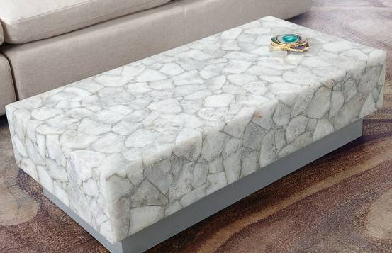 The Gemini Cocktail Table by Diamond Sofa is a stunning presentation of nature's beauty. Genuine white quartz bedazzles with its rich variations and organic composition. Elevated atop an antique silver-finished base, the Gemini Cocktail Table is sure to become the centerpiece of its surroundings.Read More