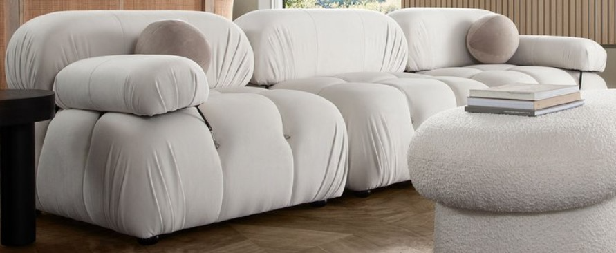 The Paloma Modular Collection by Diamond Sofa is a true blend of form, function and style. With its bubble grid tufted style, carabiner attachment system for arms and cushions and plush velvet pleated covering, it oozes a chic sophistication while delivering flexible configuration depending on your spatial requirements.Read More