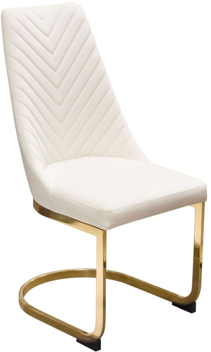 The Vogue Dining Chair by Diamond Sofa provides a regal addition to your dining area. The set includes 2 chairs, each piece featuring a polished gold stainless steel frame that supports a seat and back finished in a plush cream velvet with an exquisite "V-Tufted" design detail.Read More