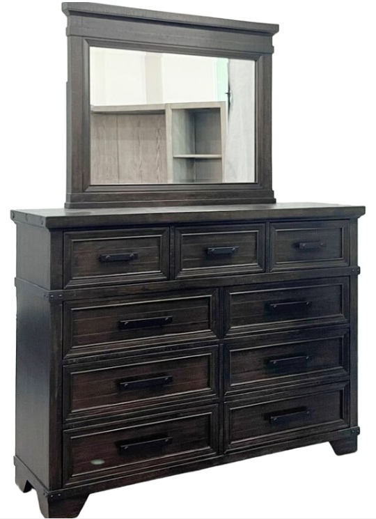 The Colorado City Dresser and Mirror set combines functionality with elegant style. The dresser offers ample storage with its spacious drawers, while the sleek mirror enhances the room's aesthetic. Finished in a contemporary charcoal tone, it’s a perfect addition to any bedroom.Read More