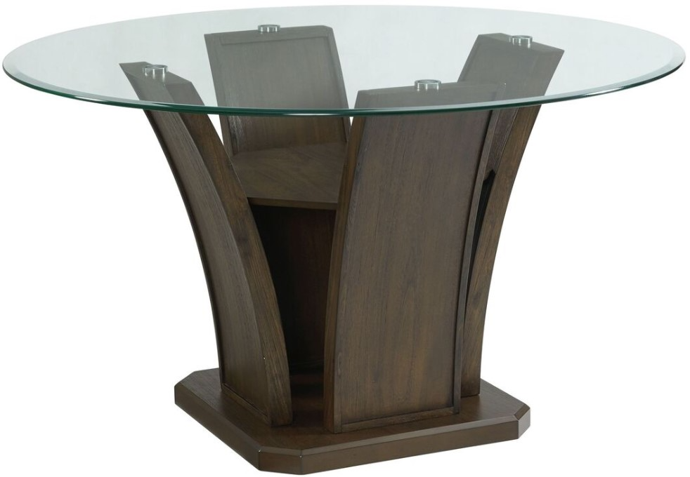 Bring contemporary elegance to your dining space with the Dapper glass top round dining table. Its clear tempered glass surface showcases the rich walnut-finished base, creating a striking blend of modern style and warm sophistication—perfect for intimate meals or stylish entertaining.Read More