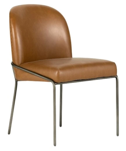 An Art Deco dream. Finely sculpted, scalloped-back dining chair of faux leather pairs with slim, iron tube framing finished in a brushed slate, for a smooth, fashion-forward feel. A dining chair is crafted for both aesthetics and comfort. The shape and styles making them versatile additions to any dining space.Read More