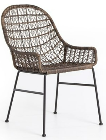 Clean, contemporary shaping and an updated weave transform all-weather wicker into something modern. This low-armed dining chair is supported by a contrasting black iron base. Safe for outdoor spaces — cover or store indoors during inclement weather and when not in use.Read More