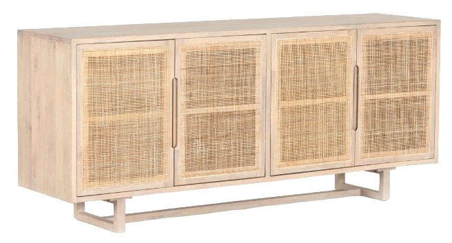 Mid century-spirited while beautifully on trend. A texture-driven sideboard of white-washed mango features door fronts with natural cane paneling. Spacious interior for plenty of storage space, with adjustable shelving plus rear cutouts for cord management.Read More