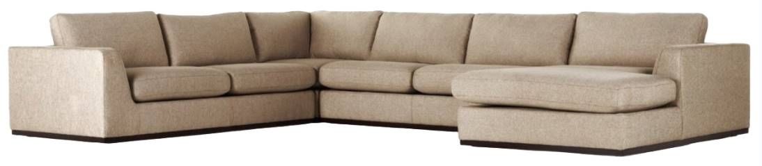 A four-piece sectional styled for everyday lounging. A textural poly/linen blend covering is made for comfort, with subtly flared sides for shapely effect and a wrapped plinth base. Left arm facing piece to matching sectional.Read More