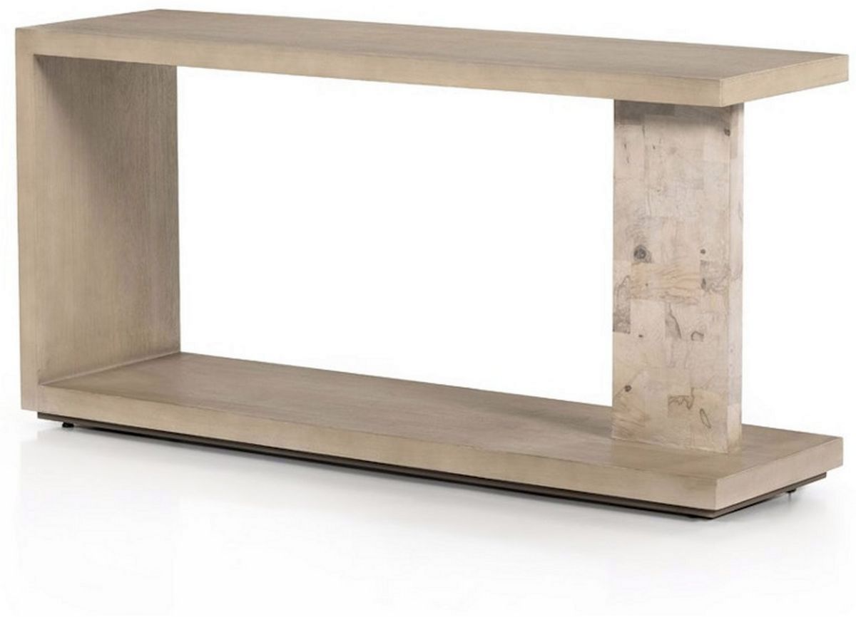Minimalists went modern. White-finished mahogany forms a cantilever-like C shape, while an accent leg of bleached ash burl veneer speaks subtly to Brutalist inspiration. Color variance in sun-bleached finishes is expected and reflects the woods' naturally unique character.Read More