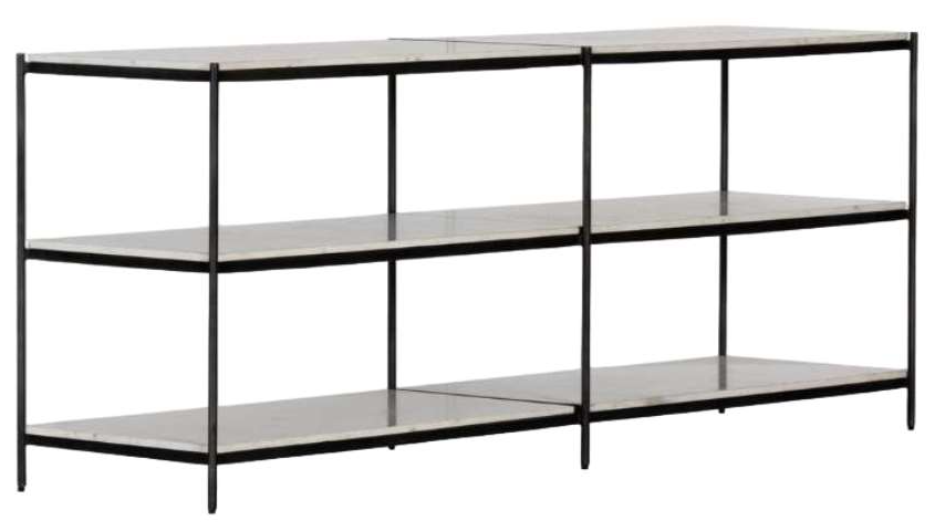 Hammered grey-finished iron frames three tiers of polished white marble, for an open look with plenty of surface space. Its sleek design and natural finish make it a versatile piece, perfect for enhancing any entryway or living room decor.Read More