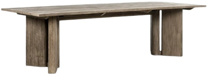 A smoked grey finish delivers a character-rich look to an open-style outdoor dining table. Angled panel legs separated by a cylinder up the intrigue factor. Cover or store indoors during inclement weather and when not in use.Read More