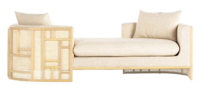 Inspired by Japanese Tatamis, a cleverly constructed outer frame consists of rattan and natural cane paneling. For a clean, monochromatic look sits cream linen-blend performance seating exclusive to Four Hands. Performance fabrics are specially created to withstand spills, stains, high traffic and wear, ensuring long-term comfort and unmatched durability.Read More
