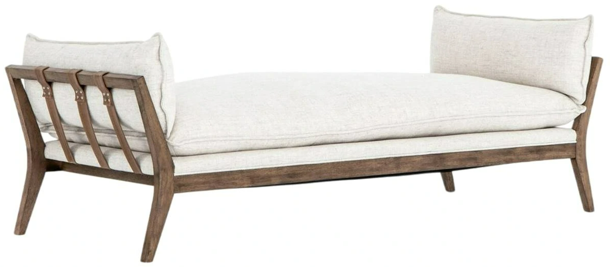 Made for stretching out or sinking in, this chaise by Four Hands has cream-colored pillowtop cushioning cradled by a natural parawood frame, with taupe top-grain leather buckles lending an edgy finishing touch.Read More