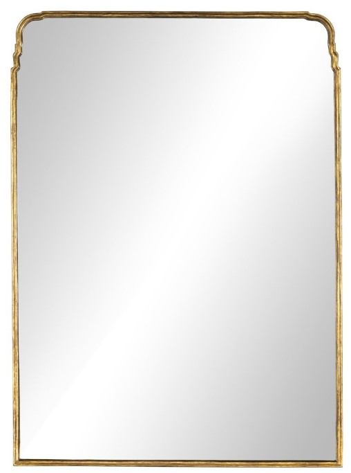 A gold-leaf frame evokes a found vintage look for this statement floor mirror. Classical flair with a unique, detailed shape. The thinner frame profile provides a subtle detail to the large silhouette.Read More