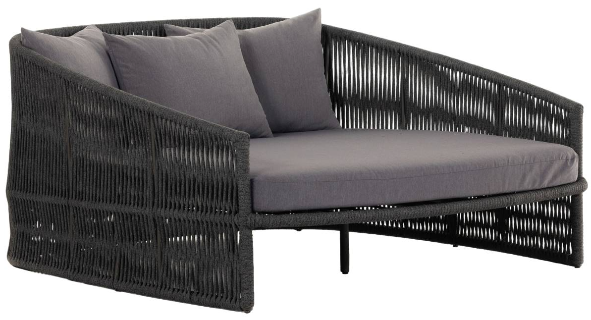 The perfect place for outdoor daydreaming. A beautiful rope-based design is woven across a durable aluminum frame in a rich bronze finish. Topped with a wide cushion and throw pillows, all upholstered in 100% olefin, known for its UV-resistant, water-repellent and quick-drying abilities.Read More