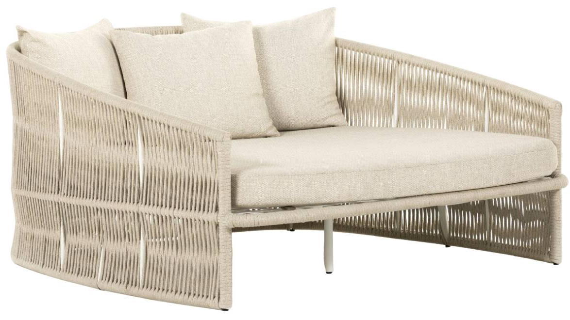 The perfect place for outdoor daydreaming. A beautiful rope-based design is woven across a durable aluminum frame in crisp white. Topped with a wide cushion and throw pillows, all upholstered in 100% olefin, known for its UV-resistant, water-repellent and quick-drying abilities.Read More