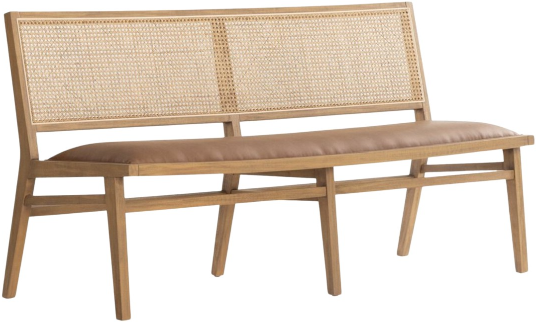 Solid, sand-colored beech wood features a natural cane back for extra texture, while a butterscotch-finished faux leather seat serves total comfort