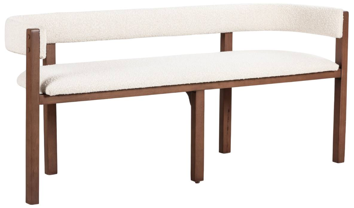 With curved, midcentury-inspired lines, this dining bench is a study in crafted minimalism. Sleek almond parawood pairs with chunky cream boucle for textural contrast. Beautifully crafted piece that combines charm with timeless design.Read More