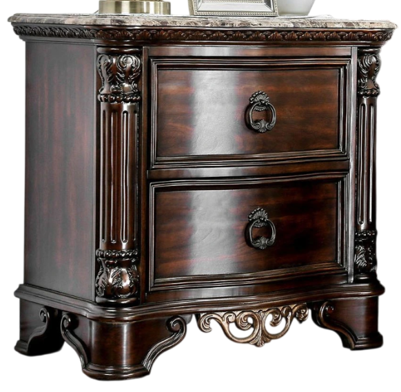 The elegant molding of this nightstand creates a stunning, and graceful bedroom environment. The espresso finished wood has been carved with a winding rope-like trim that has been brushed with gold to match the lavish drawer hardware.Read More