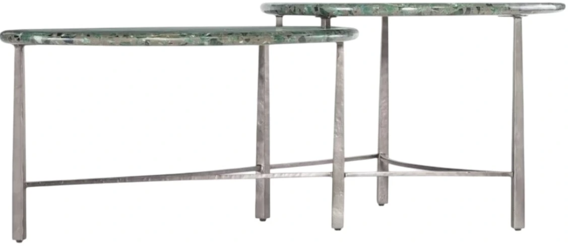 Textured pewter metal base with stone tops with green, black and charcoal bits