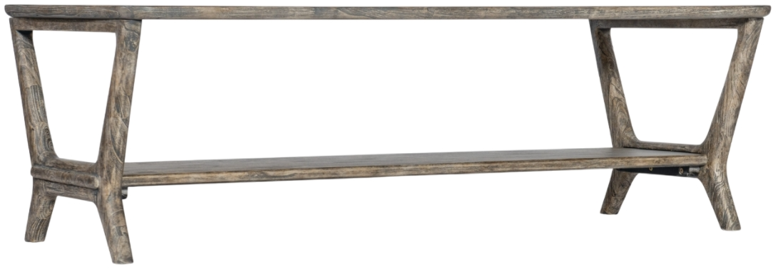 Projecting a chic boho vibe, the Brandon cocktail table is crafted of mindi solids and veneers in a natural transparent wood finish that reveals natural color and grain variation for a casual authenticity. One fixed shelf. Targeting the next generation of furniture buyers, hooker furniture unveils the Commerce & Market brand of accent and occasional pieces.Read More