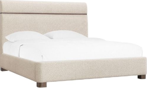 The Eleana upholstered king panel bed exudes modern sophistication, featuring soft Hanalei oat fabric upholstery, light caramel walnut veneer framing, and rounded block feet. Ideal for spacious master bedrooms, this piece marries elegance with comfort.Read More