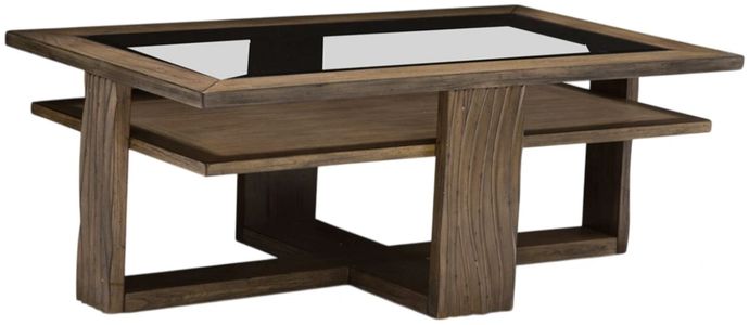 Shape your style! This Del Mar Sound Cocktail Table is the perfect eye-catching piece for a rustic living room, with one under tier, a smooth beveled glass top, and carved cross-banded legs.Read More