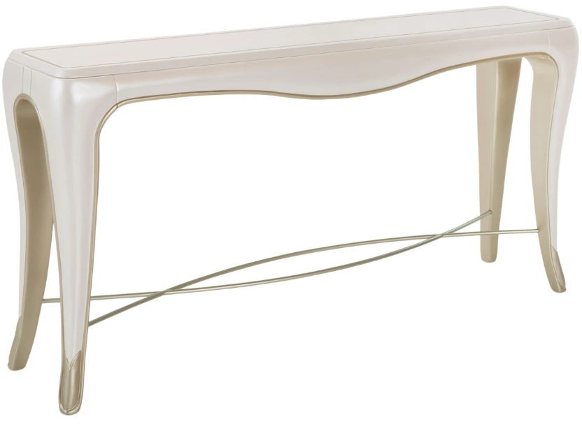 Frame your home with class. The London Place creamy pearl console table’s graceful shape and glamorous finish make this piece the perfect place to perfect your luxury home style. Tabletop features a painted platinum design and cabriole legs.Read More