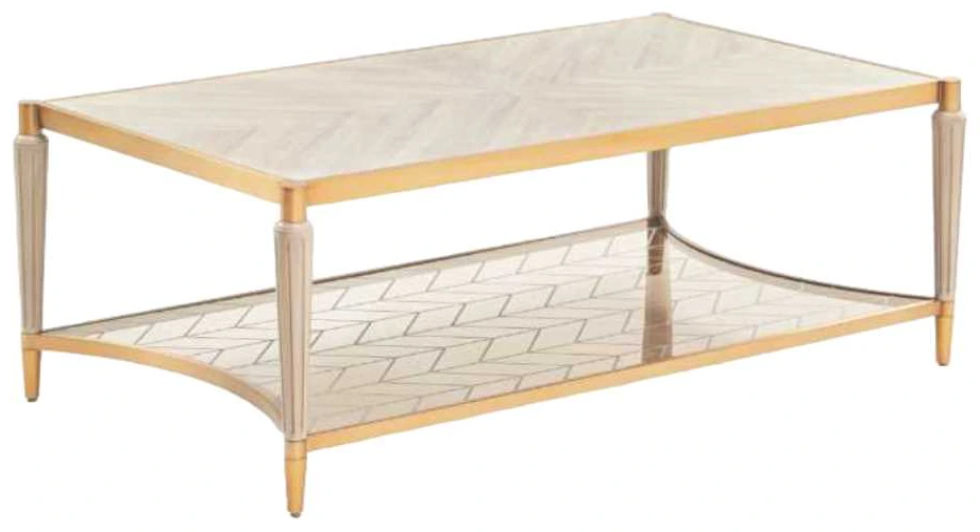 The Saint Charles cocktail table is a centerpiece that commands attention, distinguished by its intricate etching on the tinted glass shelf beneath. This feature not only adds visual interest but also a layer of sophistication to the piece.Read More
