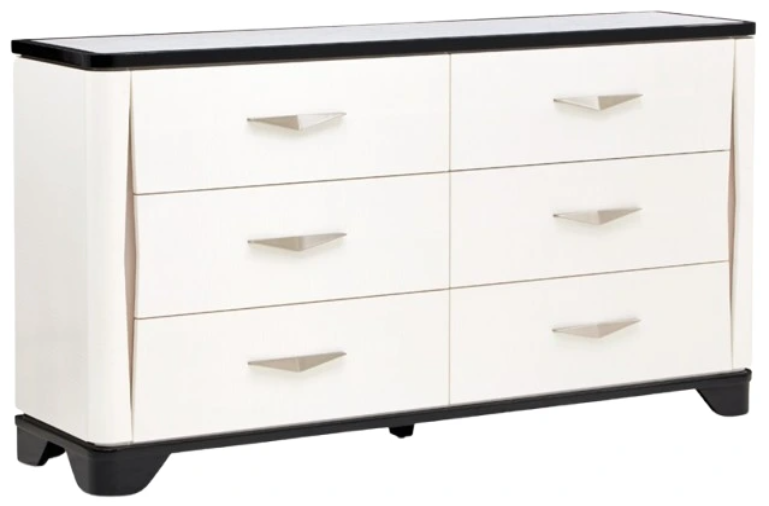 Crafted with white anigre veneer and accented with stainless steel pulls, this dresser stands not merely as storage but as a beacon of luxury in your personal sanctuary.