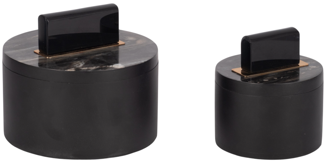 The Sagebrook Home wheatly black round box set includes two round boxes crafted with a mix of resin, wood, metal, and glass accents. With their sleek black finish and nesting design, they offer stylish storage and subtle elegance—perfect for organizing small items on shelves, consoles, or desks.Read More