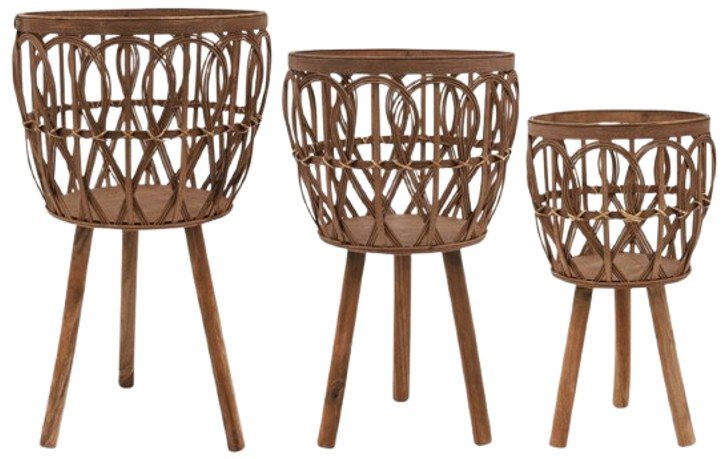 Add natural charm to your space with this set of three brown bamboo planters in graduated sizes—11", 13", and 15". Perfect for indoor greenery, they bring warmth and organic texture to any décor.Read More